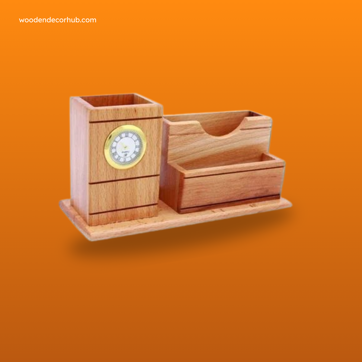Wooden Desk Organizer with Clock and Pen Holder - Compact and Functional Office StorageWoodCraft Desk Organizer Pro